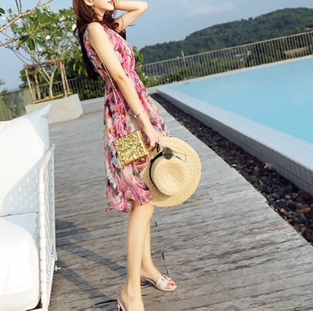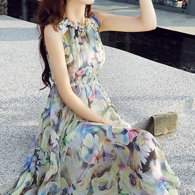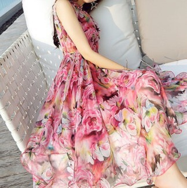 ギャザーネックが女らしいワンピース♡シフォンで色合いも上品な印象に♡