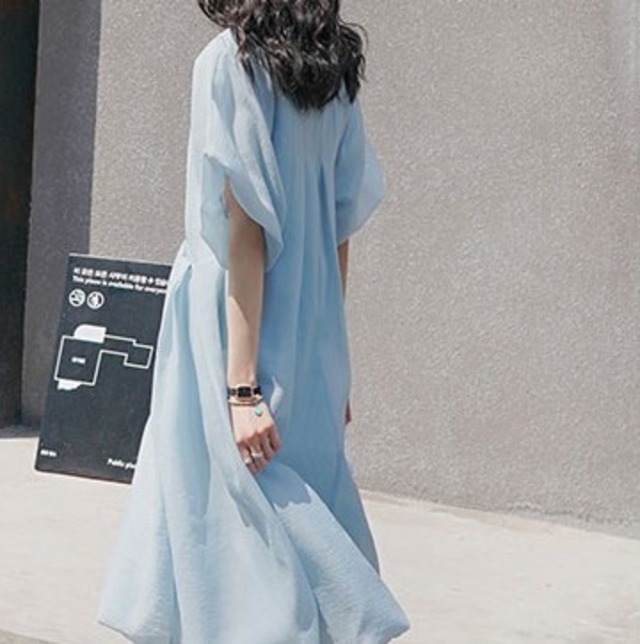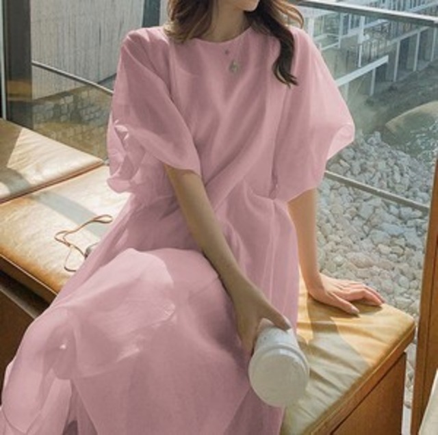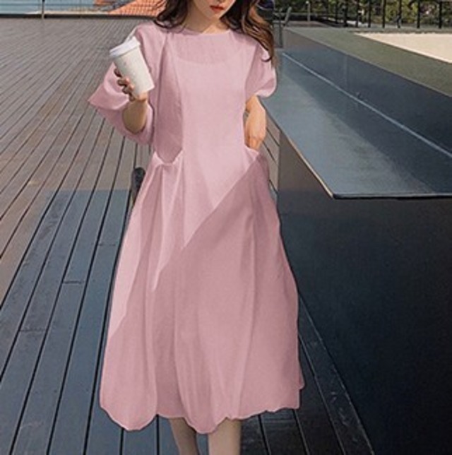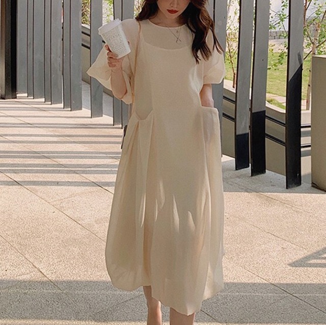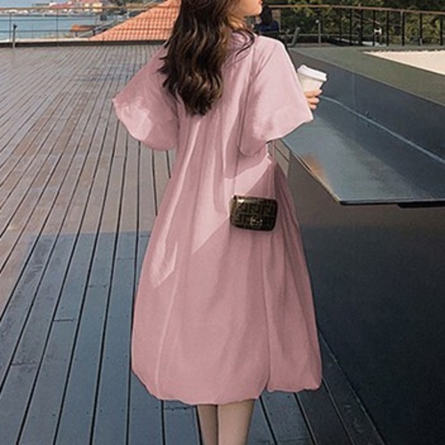 パフスリーブのルーズワンピース♡ミドル丈で、誰が着てもやさしい雰囲気になるワンピース♡