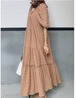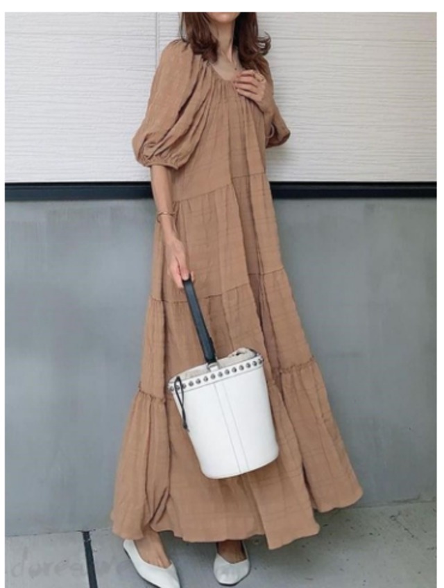 素材感がカワイイ、ルーズなパフスリーブのロングワンピース♡ニュアンスカラーの