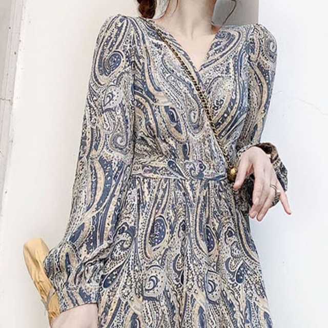 シフォン素材でVネックのロングワンピース♡やさしい感じのペイズリー柄が女らしい。。♡