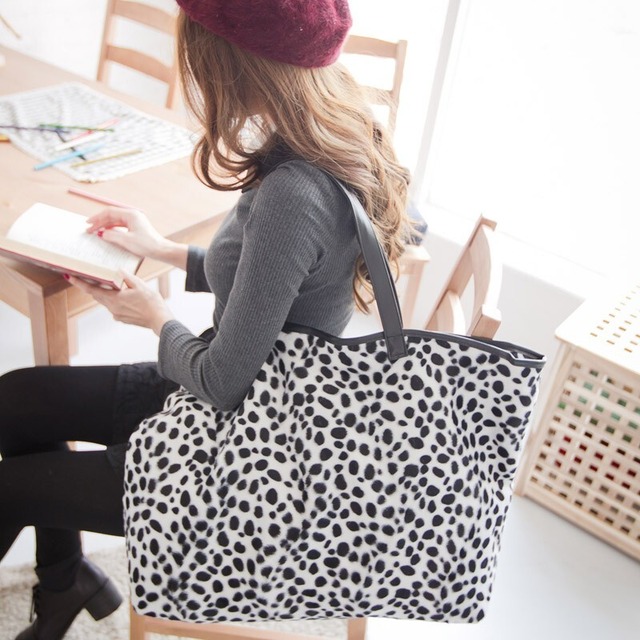 大きめサイズのヒョウヒョウ柄のトートバッグ♡小旅行なら十分な大きさ♡大きめバッグも秋冬のトレンド♡大き目柄と小さめ柄、白黒柄の3色展開♡