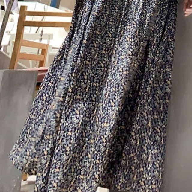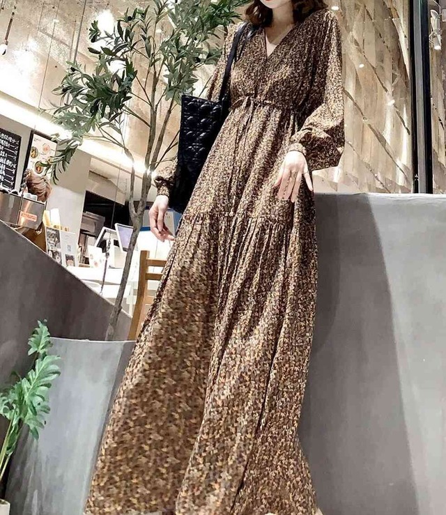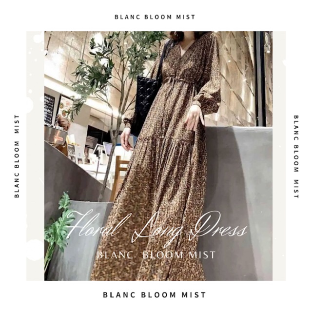 上品な花柄でVネックのロングワンピース♡秋っぽいブラウンとネイビーの2色展開♡