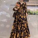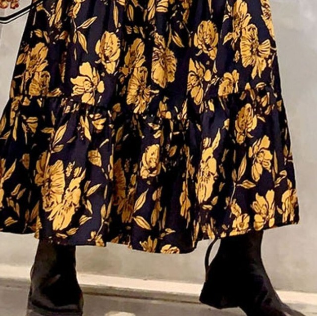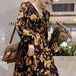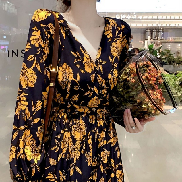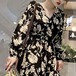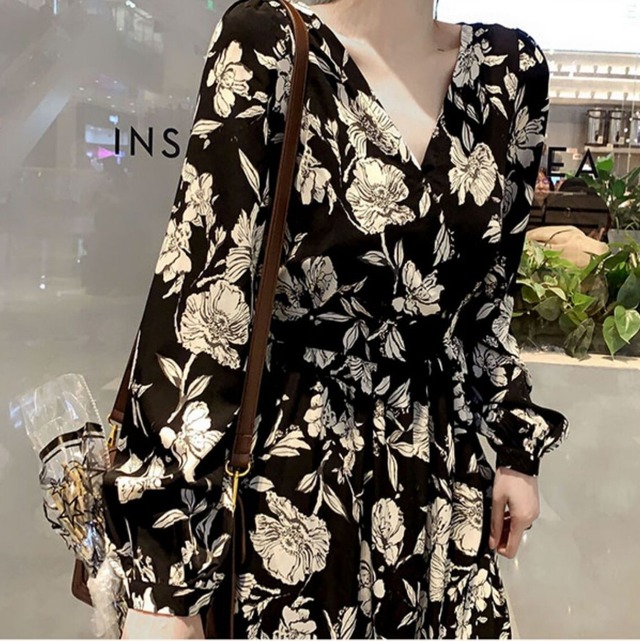 大き目の花柄が印象的な長袖のロングワンピース♡Vネックが女らしい♡