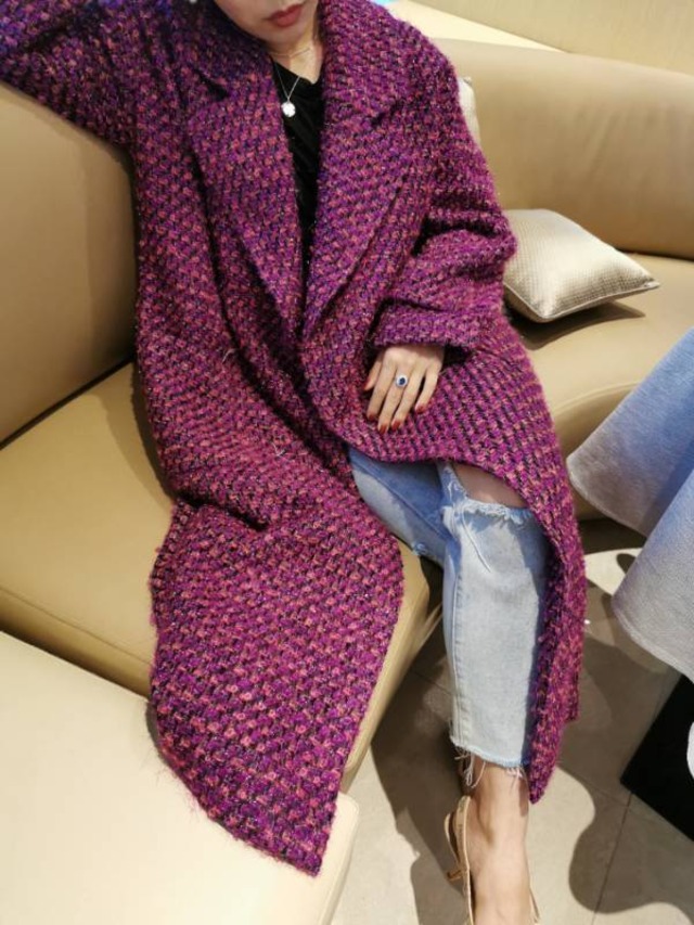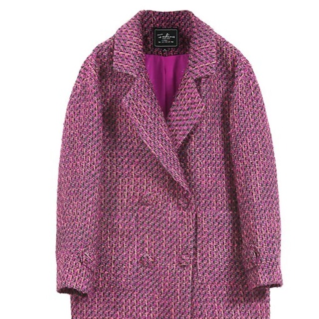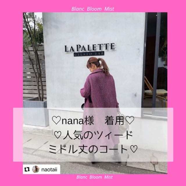 冬の人気♡レトロ感のあるツィードのミドル丈コート♡このカラーは肌なじみしやすく着映えします♡
