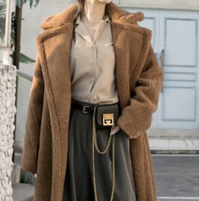 着て暖かくてスタイリッシュに見えるフェイクラムのコート♡暖かさとデザインが人気♡スリーサイズ、全8色展開♡