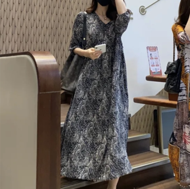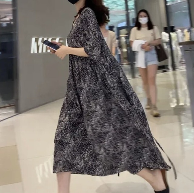 シフォンのやわらかさがメチャ女らしいモノトーンのペイズリー柄のワンピース♡Vネックでやせ見せ♡