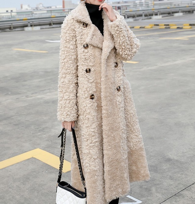 思わずさわって手触りを確かめたくなるモコモココート♡フェイクだけどラム感が高見え♡カワイくて抱き着きたくなるコート♡