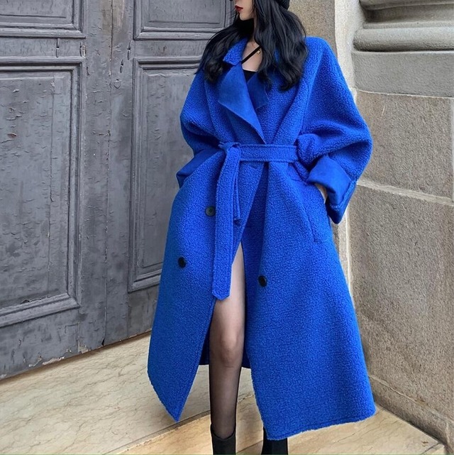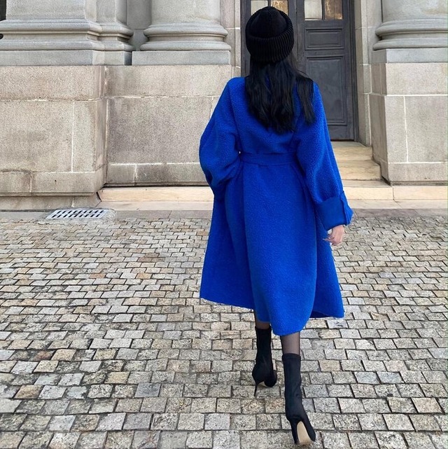 あざやかなブルーが眼を引くボアのコート♡ボアのモコモコがカワイイのにクール感がただようコート♡