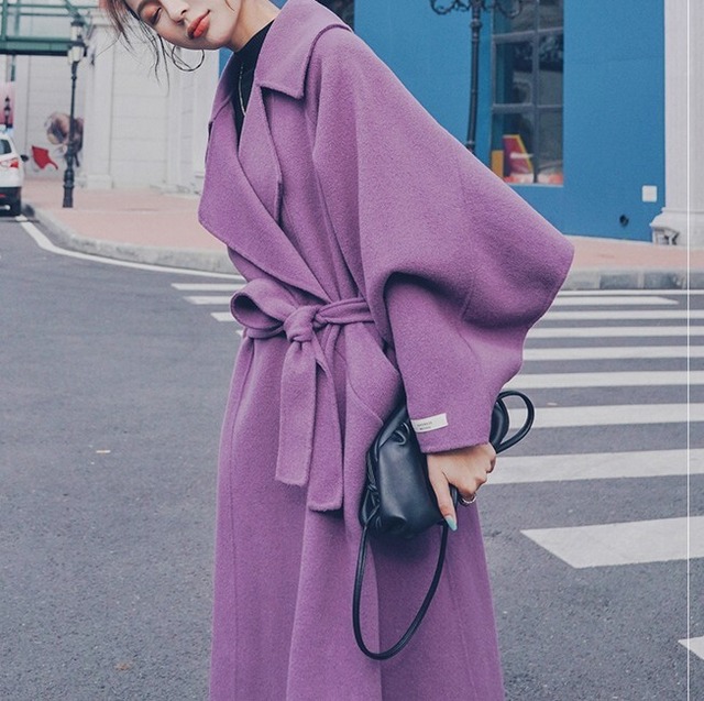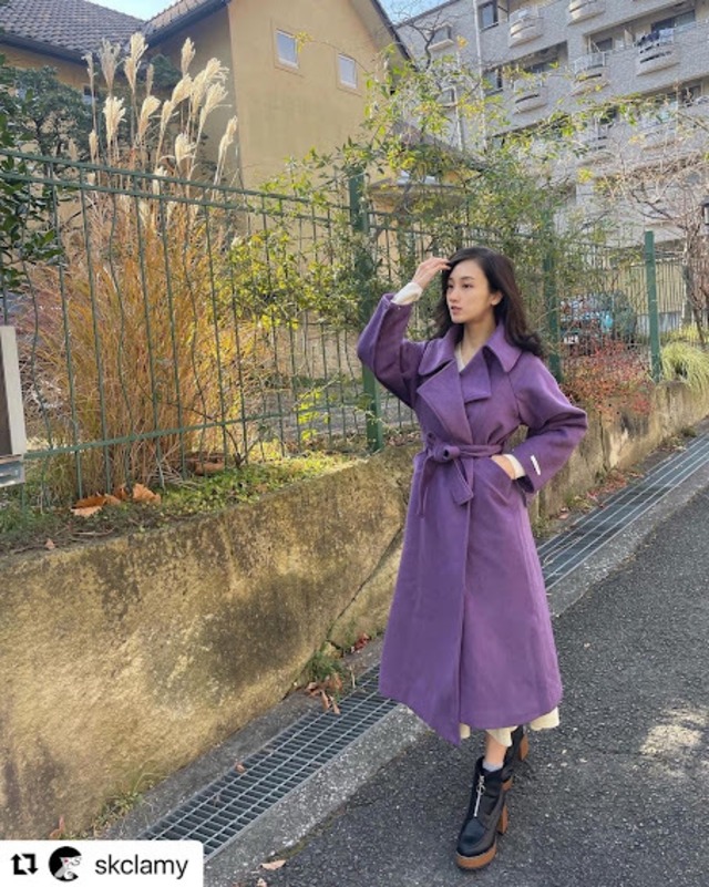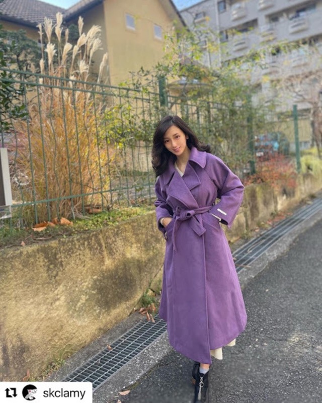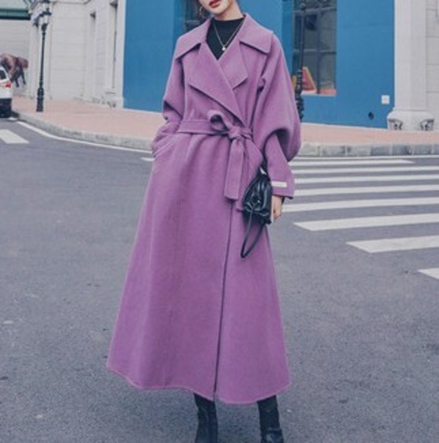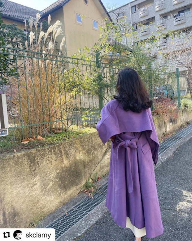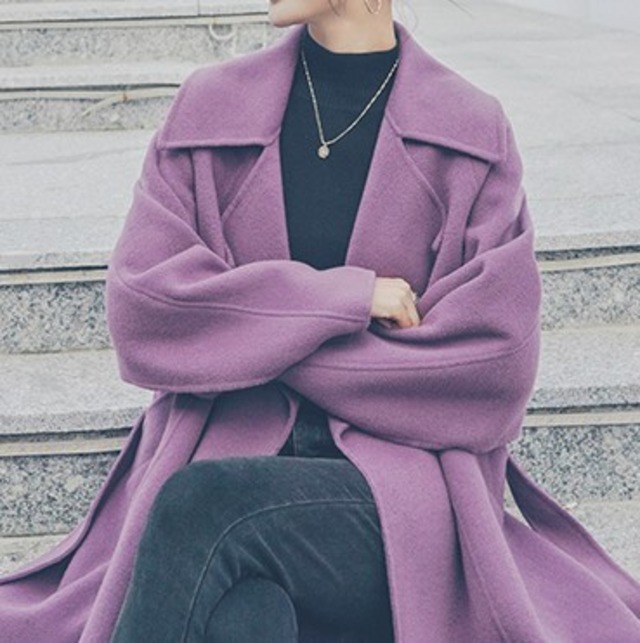 バックデザインがステキ♡ケープになっててカッコいいロングコート♡甘くなり過ぎないピンクパープルも大人カワイイ♡