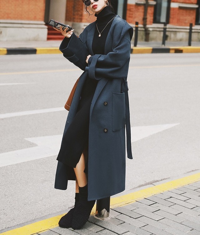 このルーズ感でフード付き♡軽く羽織ってもスタイリッシュに決まるイチオシのコート♡裏キルトで暖かい仕様♡