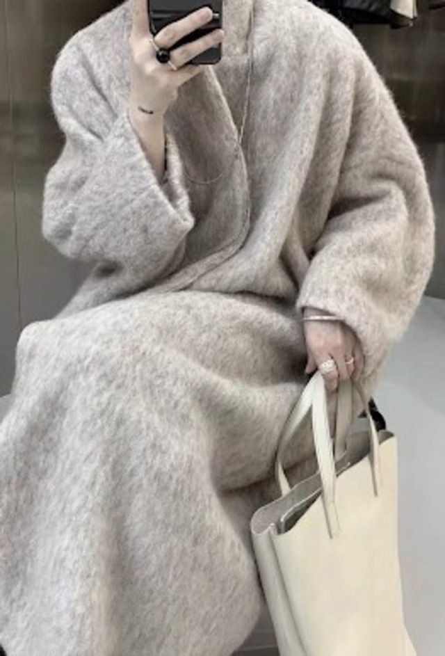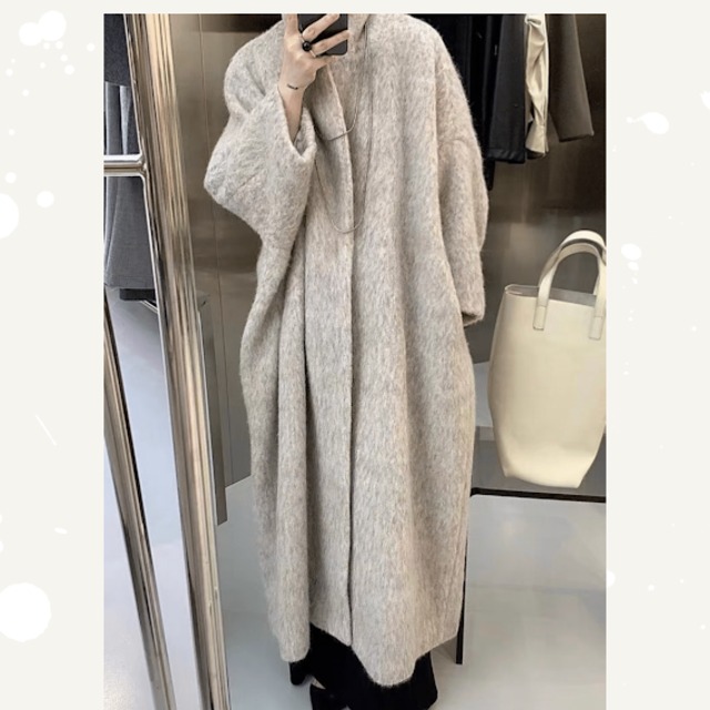 シンプルなシングルブレストのシャギーコート♡この色合いとルーズなダウンショルダーの雰囲気がたまらなくイイ感じ♡