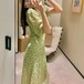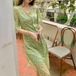 春に着たくなる淡い色のワンピース♡ライトグリーンの花柄がなんとも清楚♡