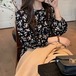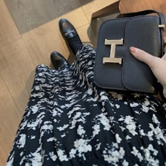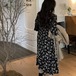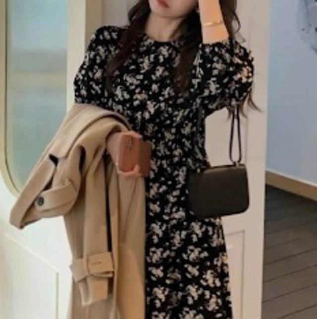 黒い花柄がやさしくてシックなワンピース♡コーディネートを考えなくても一着で雰囲気が決まるワンピ♡