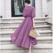 シフォン素材のロングワンピース♡Vネックの襟元のリボン結びがポイント♡パープルが春の気分。。