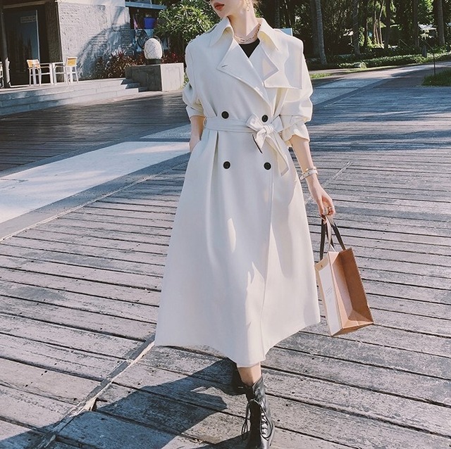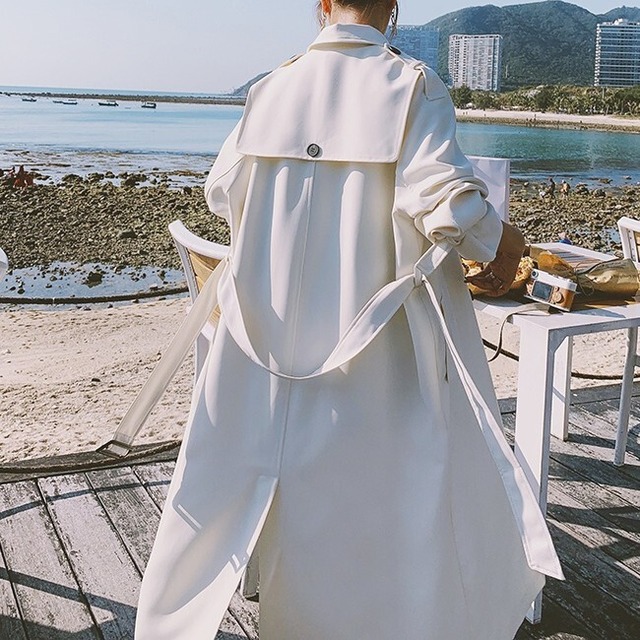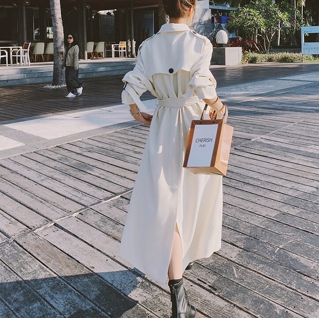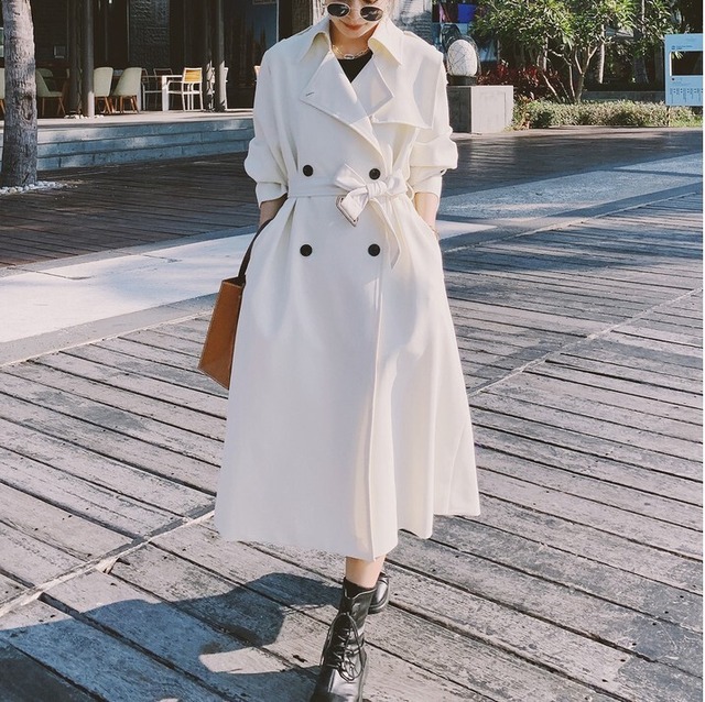 春先のやさしい日差しに映えるオフホワイトのトレンチコート♡羽織るだけで「またキレイになったね」って言われます♡