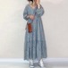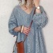さわやかライトブルーの総レースワンピース♡Vネックですっきり見えるし、七分袖のパフスリーブやティアードスカートが大人カワイイ♡
