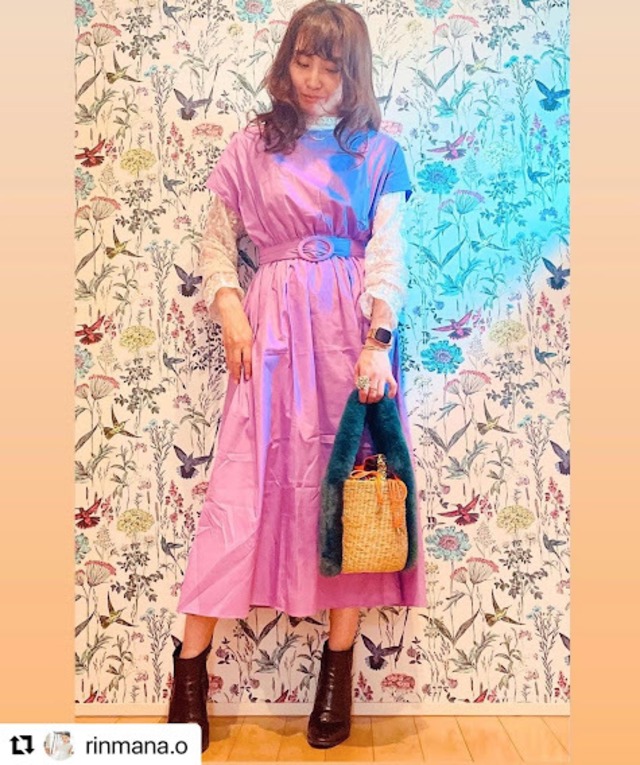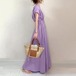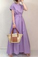 フレンチスリーブと供布ベルトで清楚な雰囲気♡ハイウエストでスタイルよく見えるロングワンピース♡使いやすい4色展開。