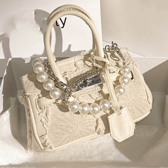 パールの持ちて付きのミニケリーバッグ♡小さいけどめっちゃオシャレ♡