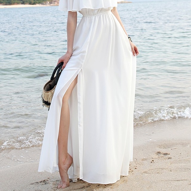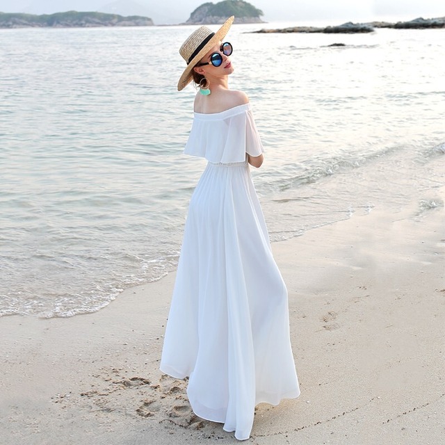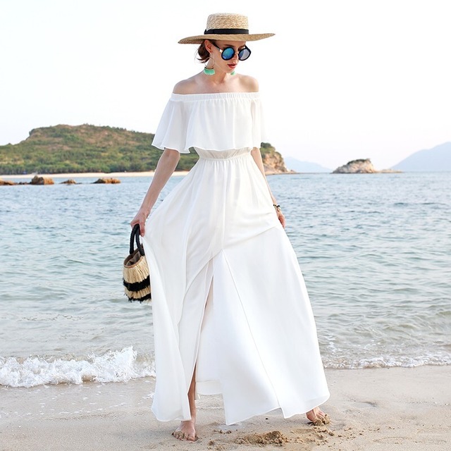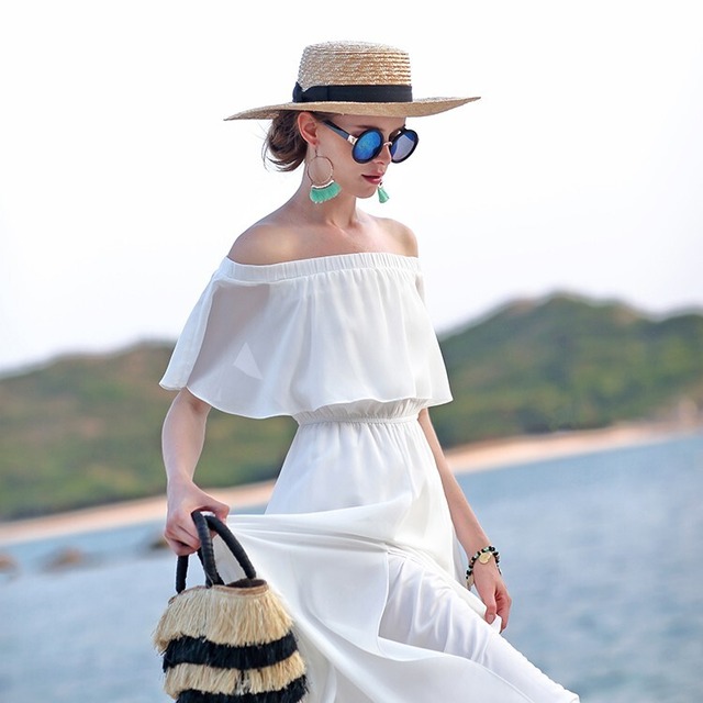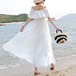 オフショルダーがかわいい白いワンピース♡Aラインが控えめながらもスタイルよく見せるロングワンピース♡