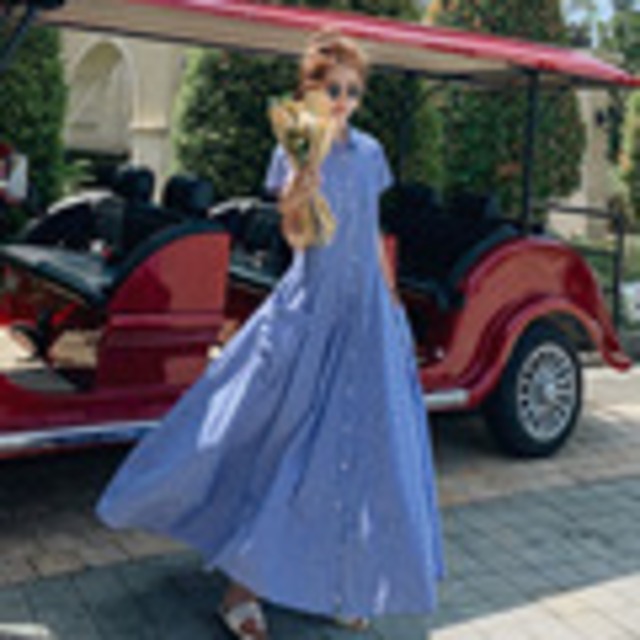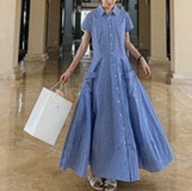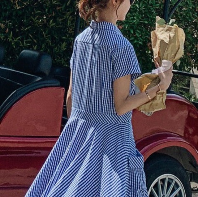 マキシ丈のギンガムチエックのシャツワンピース♡たっぷりなフレアーや切替、ポケットのデザインがオシャレ♡