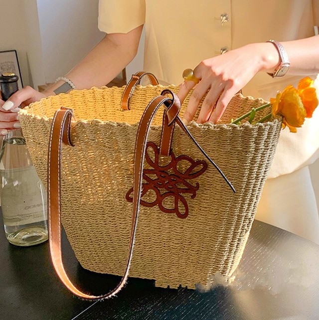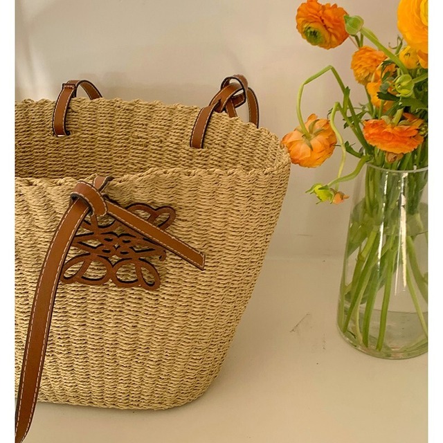 インナーバッグ付きのフレンチレトロなストローバッグ♡大きめなのもうれしい♡