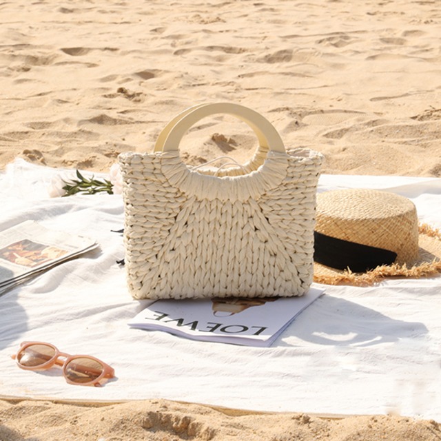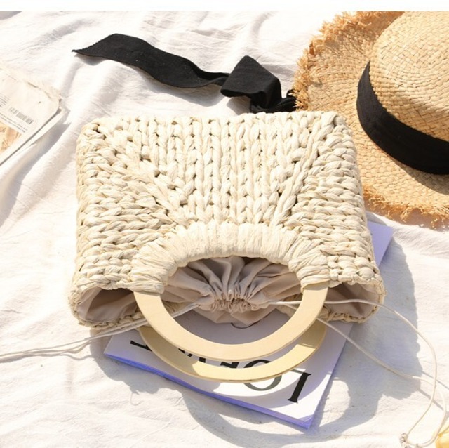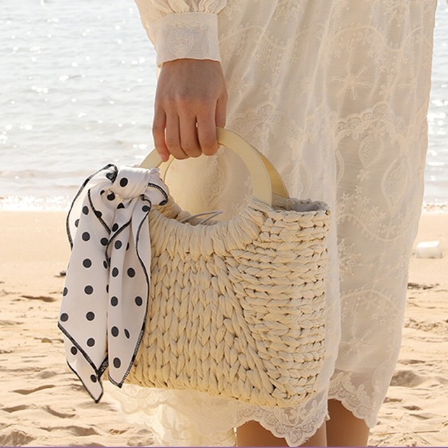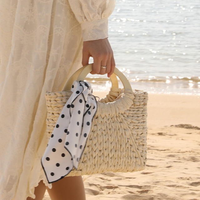 かっちりした形のストローバッグ♡内袋が付いていて中身が見えなくて安心♡ナチュラルなキャメルと清楚なホワイトの2色展開。(スカーフは付きません。)