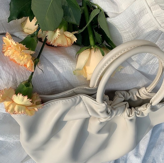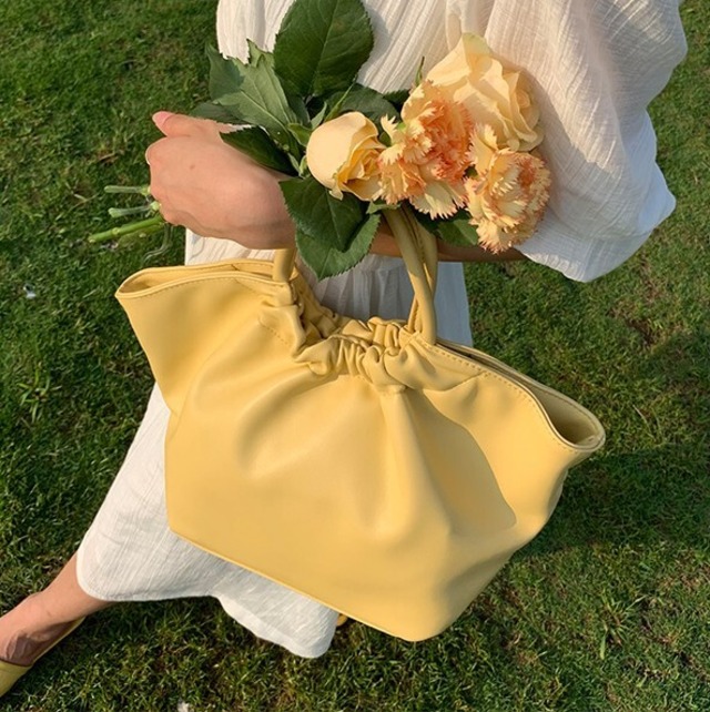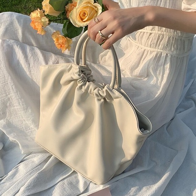 ソフトタッチのギャザー感がかわいいトートバッグ♡意外と大容量で日傘やペットボトルなんて問題ありません♡お出かけにピッタリなバッグ♡