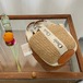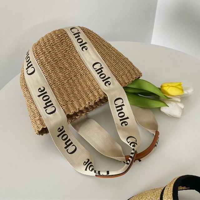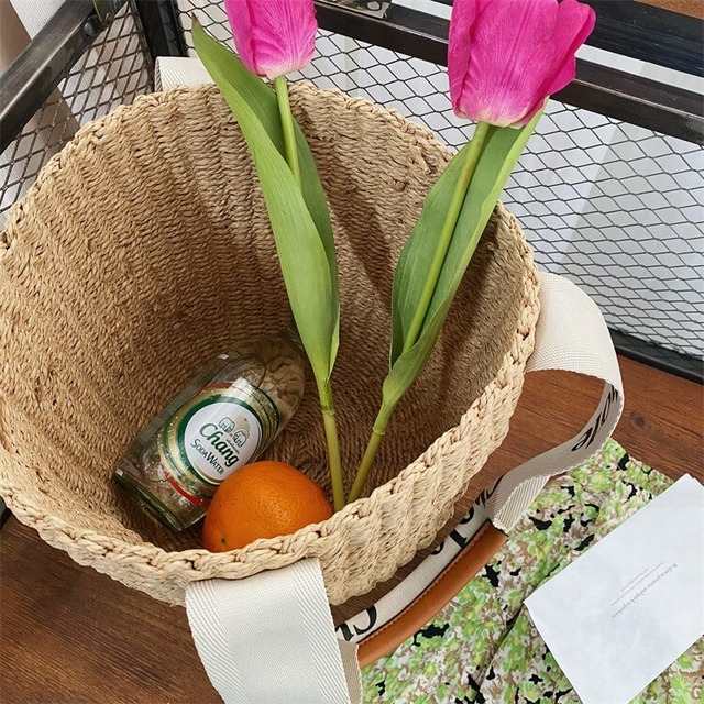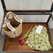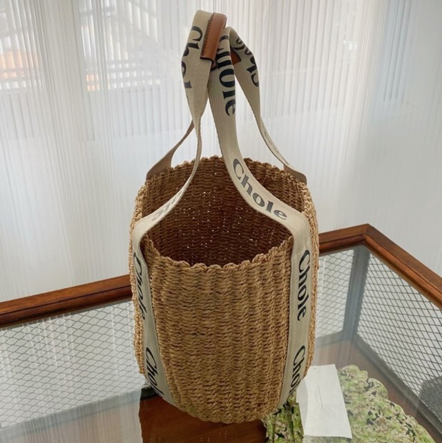 キャンバス地のロゴリボンがカワイイ♡中くらいの大きさのかごトートバッグ♡これくらいの大きさが使いやすいのかも♡このデザインは一目惚れ♡