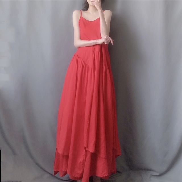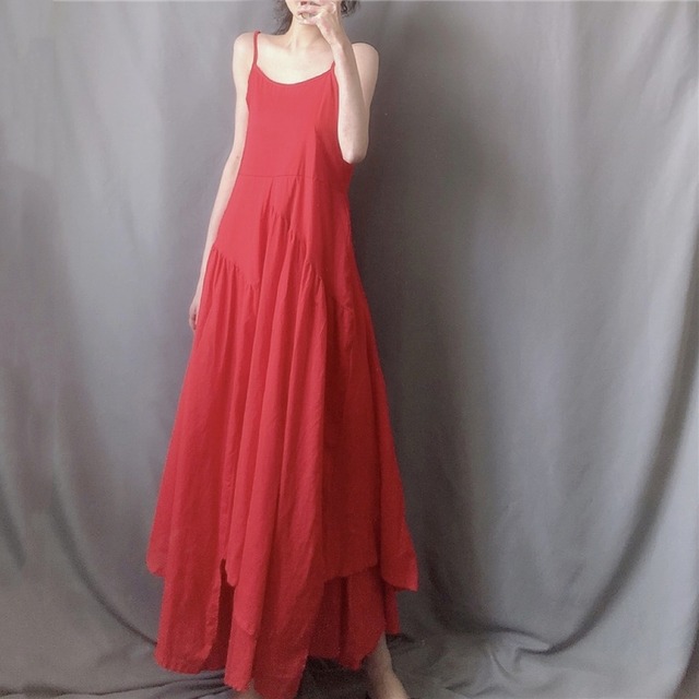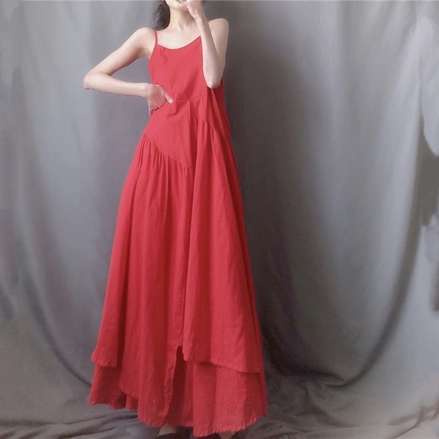 リゾートにもピッタリ♡レイヤードコーデでも着こなせるキャミソールロングワンピース♡インにTシャツを合わせたり、そのまま着て、カーデやショールをまとったり。。♡蹴回し360cmのたっぷりギャザーも魅力的♡