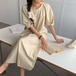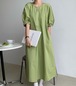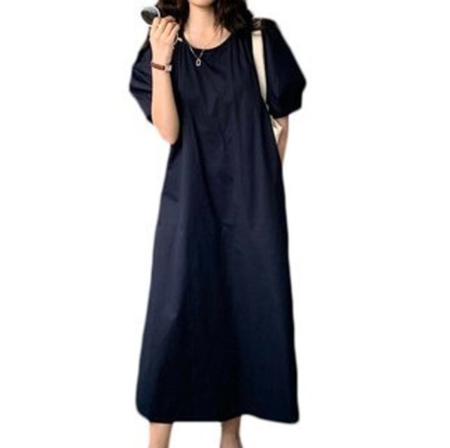 タックデザインのパフスリーブがポイントのシックなワンピース♡シンプルで品のあるロングワンピース♡