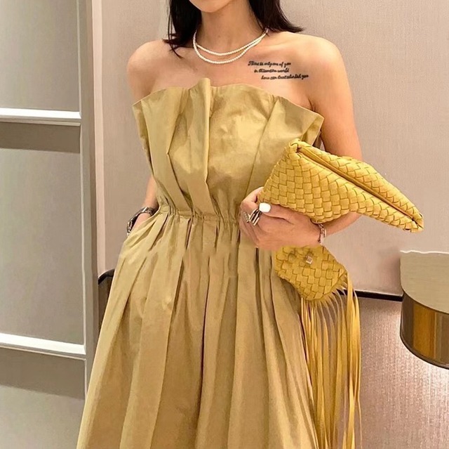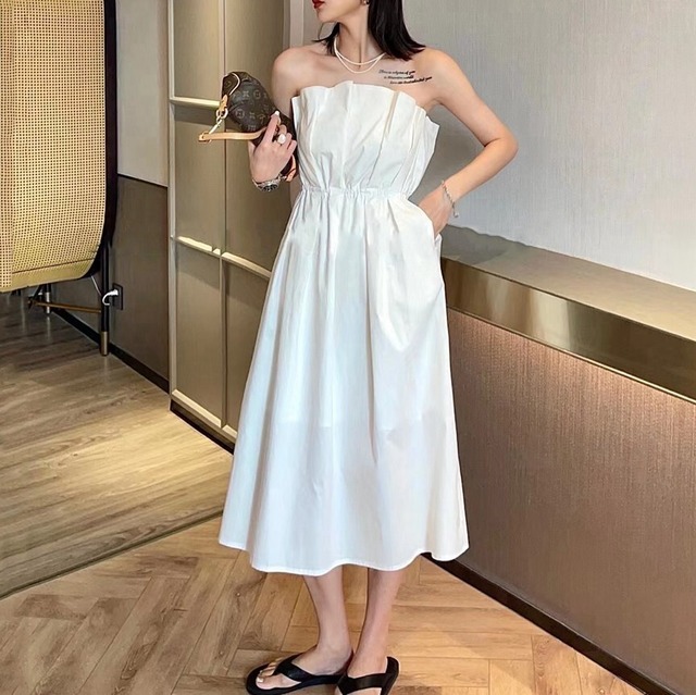 チューブトップデザインがエレガント♡Aラインでミドル丈のワンピース♡