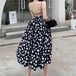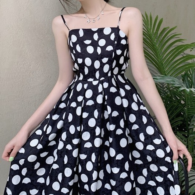 変形の水玉が大人カワイイ♡バックのデザインがカワイイ、クラシカルなクラシカルなストラップワンピース♡モノトーンの2色展開♡