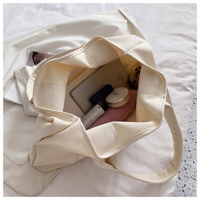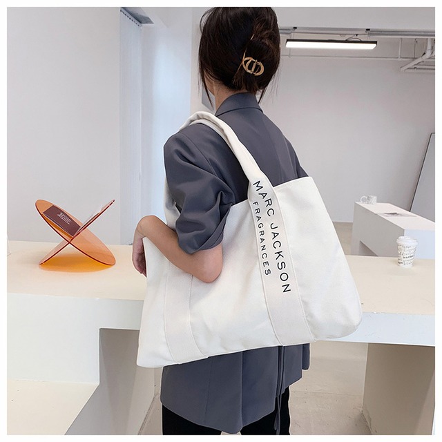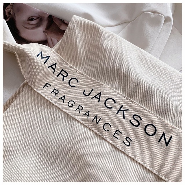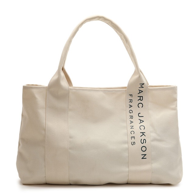 ロゴプリントのテープ使いがオシャレ♡キャンパス地のトートバッグ♡使いやすい大きめのサイズが安心♡