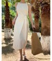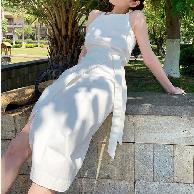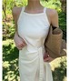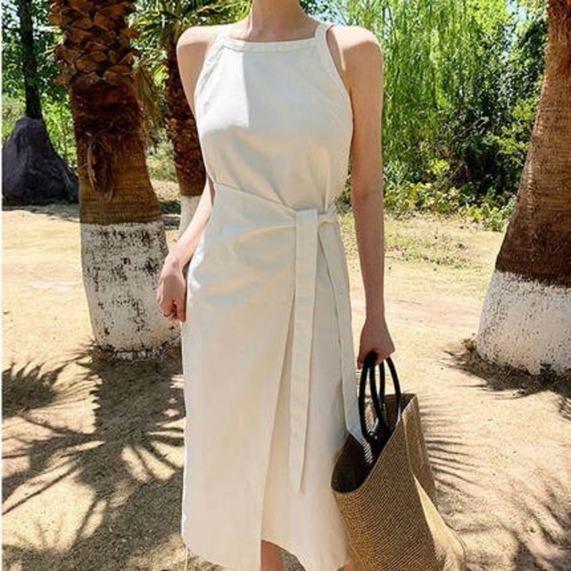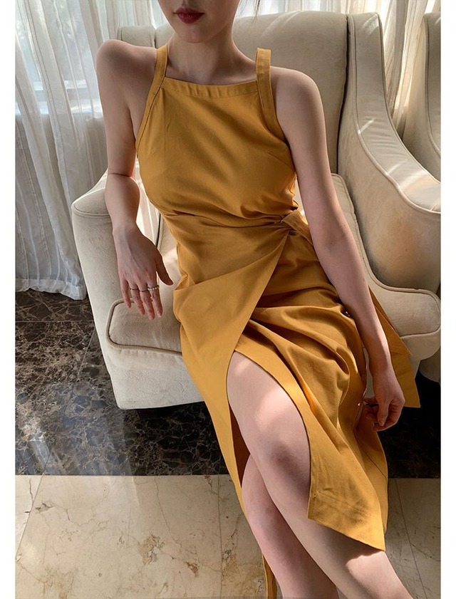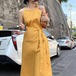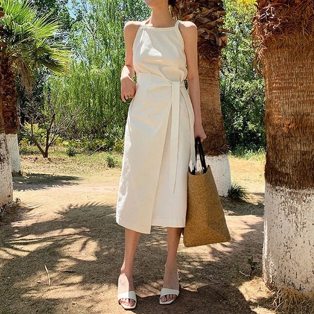 スカートのラップデザインがオシャレ♡痩せて見えるキャミソールワンピース♡キチンと見える爽やかなデザイン♡