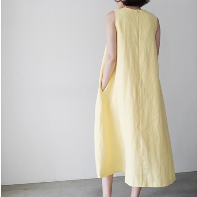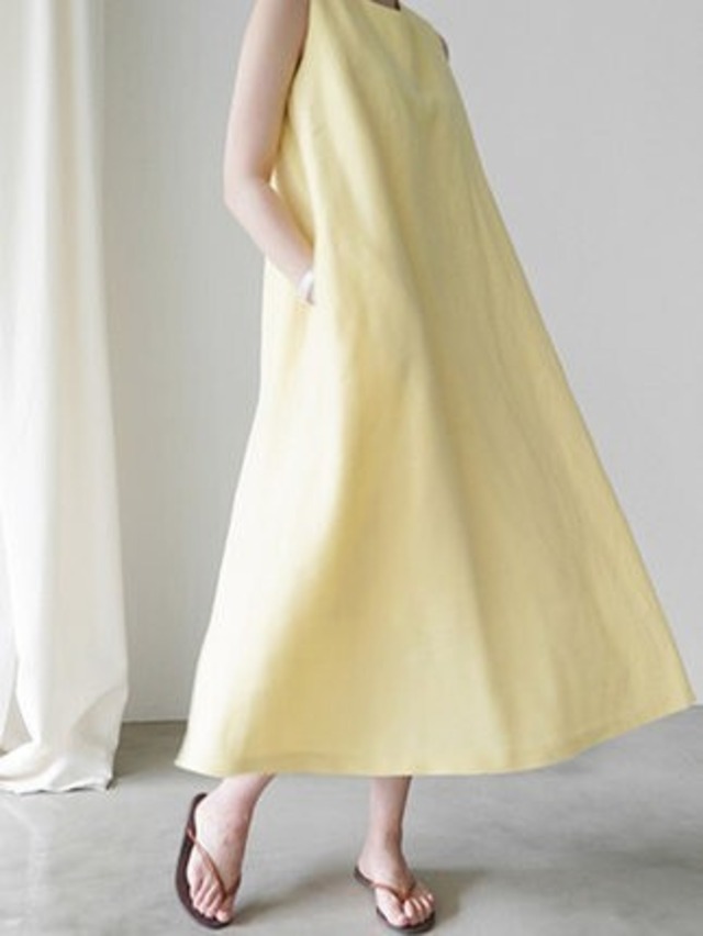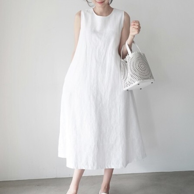コットンリネンのシンプルでルーズなワンピース♡ノースリーブで、着るだけでオシャレに見えるヘビロテするワンピース♡