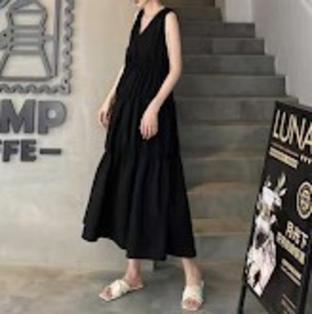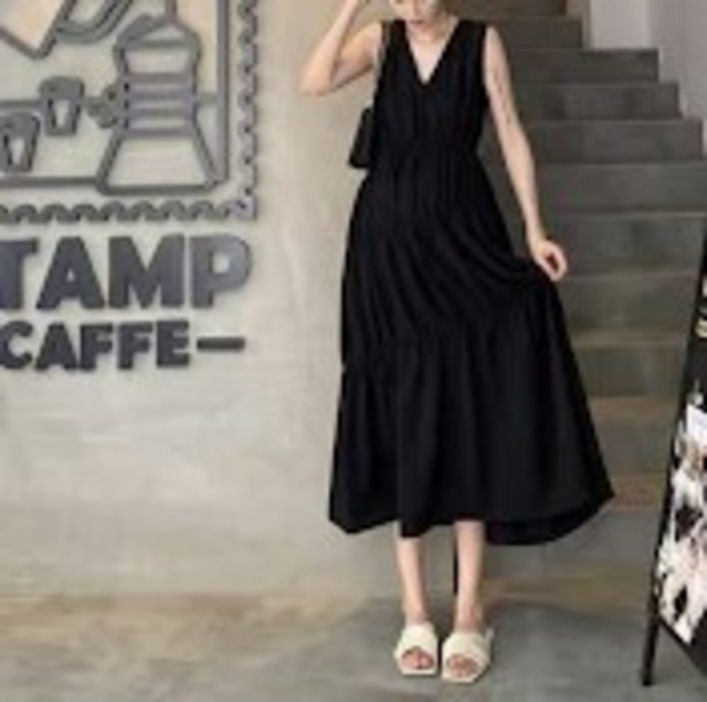 Vネックでスッキリ大人っぽく着れるティアードワンピース♡背中のリボンもまとめ髪で見えるとカワイイ♡