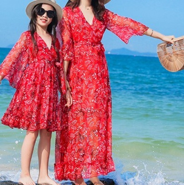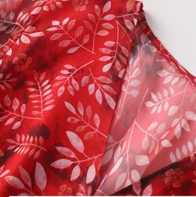 シフォンのやわらかさが女らしい♡7分袖のマキシ丈、花柄ロングワンピース♡カーディガンなどでイメージも替えやすくて着て行くシーンも幅広い♡