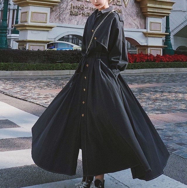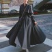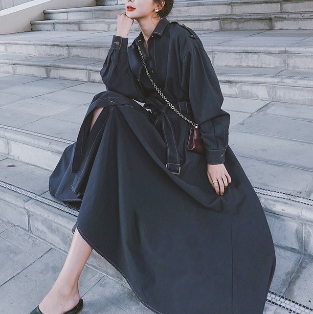 ステッチ使いが爽やかな印象♡フレアーがたっぷりの長袖のロングワンピース♡共布ベルトがキチンとした印象♡後ろボタンのデザインもカワイイ♡