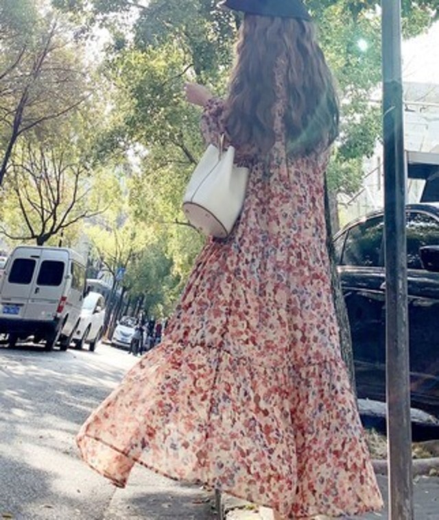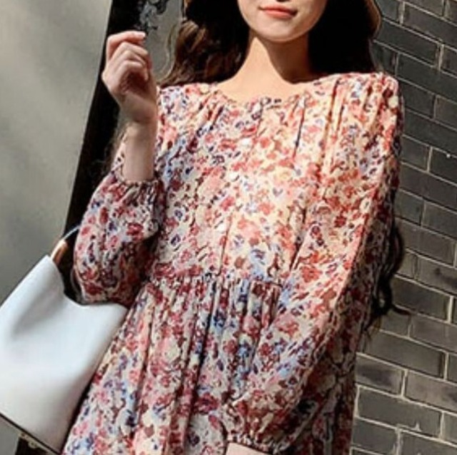 秋色の花柄プリントのティアードワンピース♡このルーズ感とシフォンの透け感がカワイイ♡