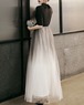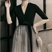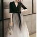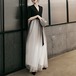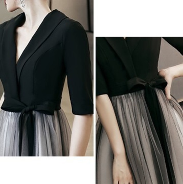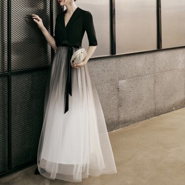 ハイエンドなおよばれロングワンピース♡深いVネックがスッキリしてかしこまった印象♡グラデーションのチュールレーススカートが上品でオシャレ♡